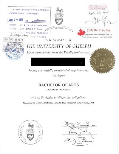 Teach Korea – Canadians notarized photocopy of original diploma notarized by Korean embassy